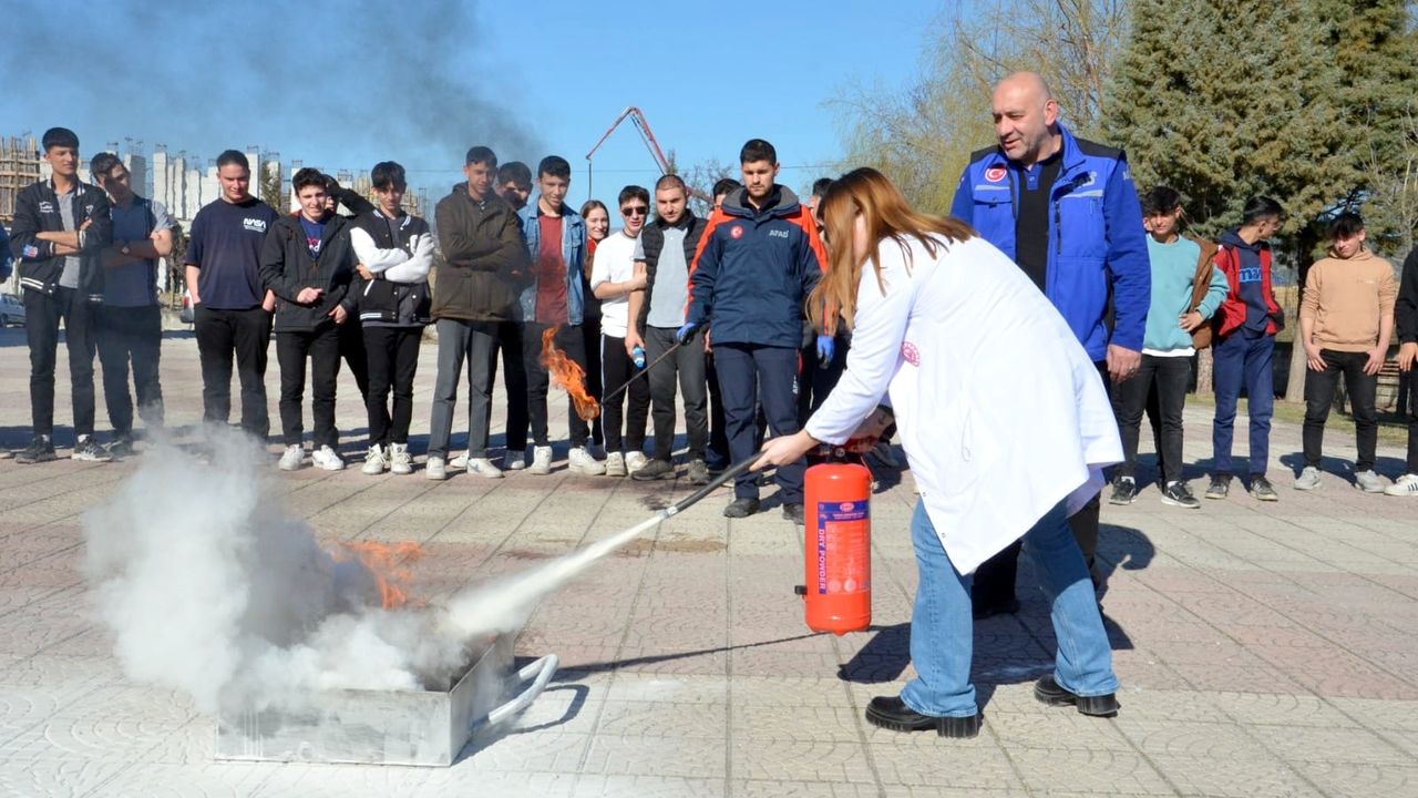 Sunumun ardından öğrenciler sınıfta deprem tatbikatı yaparken siren ile birlikte tahliye çalışması gerçekleştirdi. Etkinlikte ayrıca öğrenci ve öğretmenlerin katılımıyla yangın söndürme tatbikatı yapıldı.