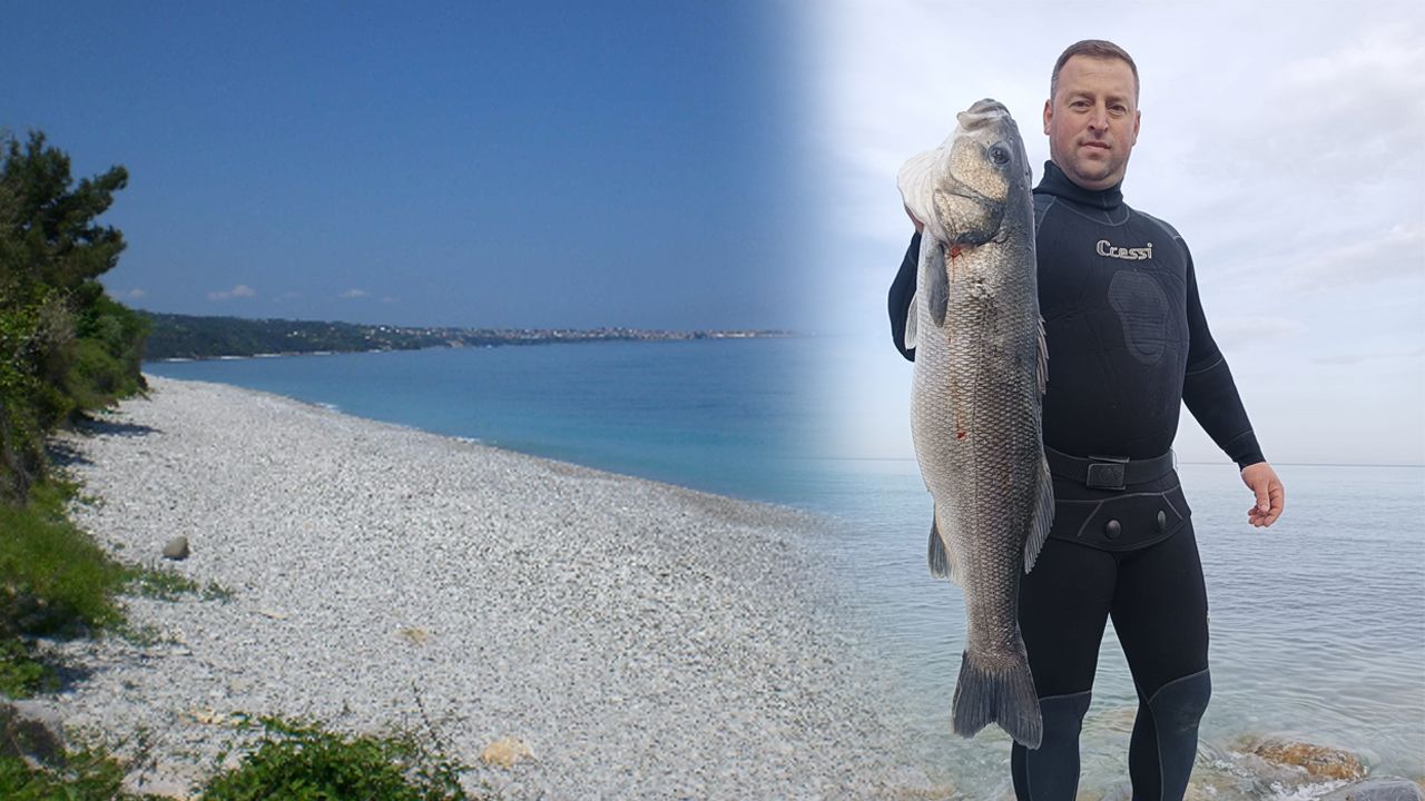Gerze'de yaşayan Tamer Yaren, balık tutmak için İdemli mevkisinde kıyıya yakın bölgede zıpkınla dalış yaptı. Bir süre sonra denizde büyük bir levrek balığı ile karşılaşan Yaren, levreği zıpkınıyla avlayarak kıyıya çıkardı.