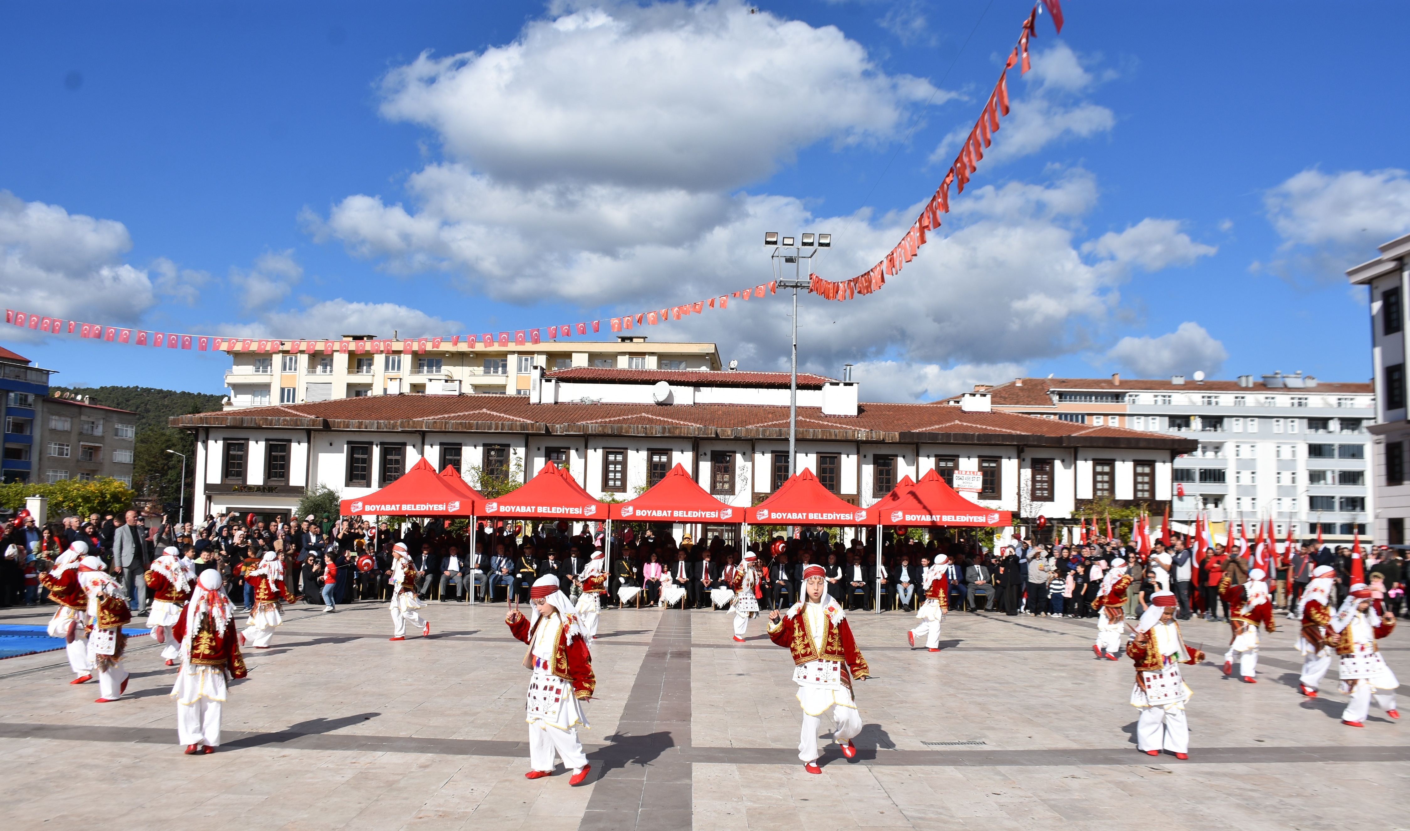 Boyabat ilçesinde Hükümet Konağı önünde gerçekleştirilen tören, saygı duruşunda bulunulması ve İstiklal Marşı'nın okunmasıyla başladı.