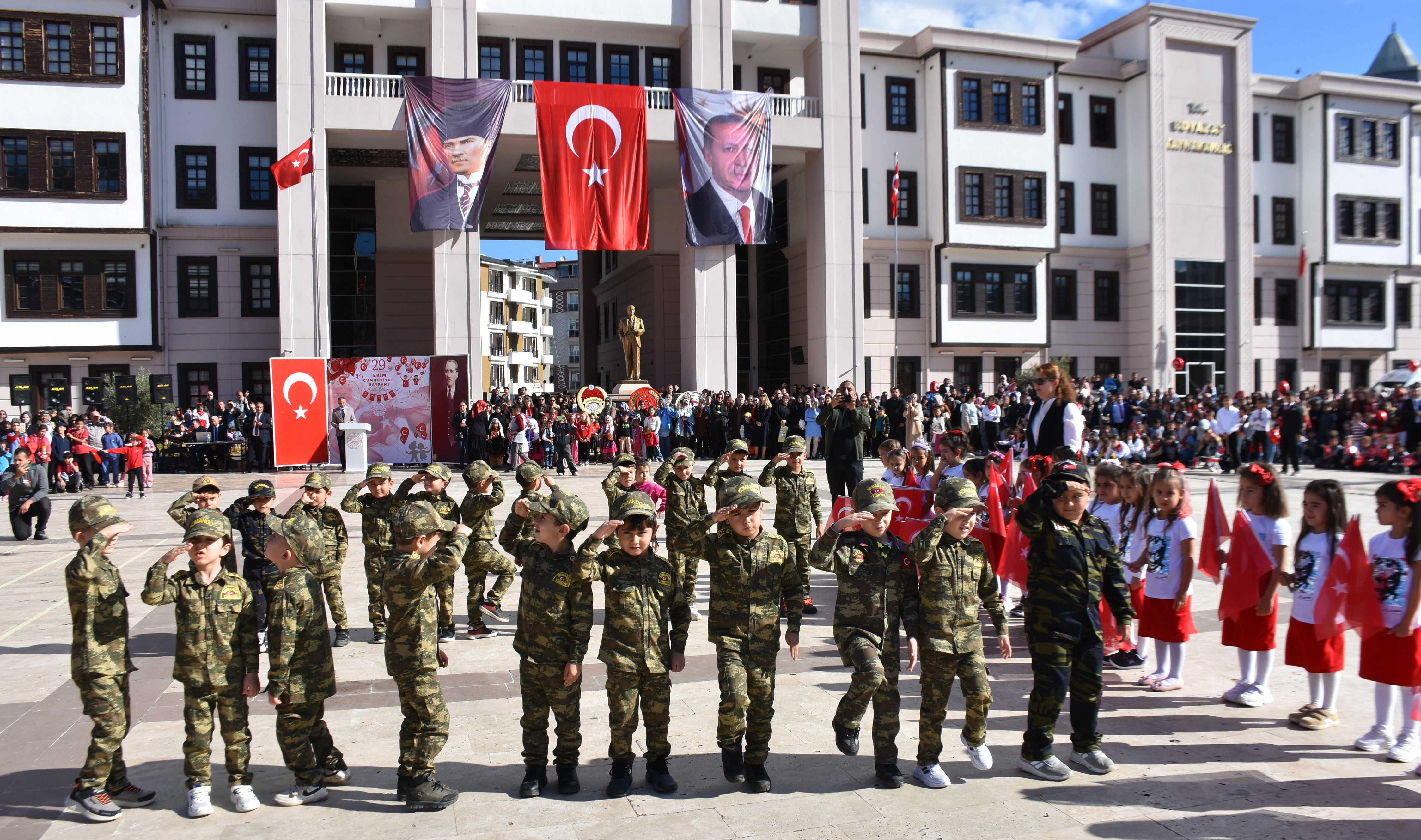 Kaymakam Enver Yılmaz, Belediye Başkanı Hasan Kara ve Garnizon Komutanı Albay Ergün Yörük'ün vatandaşların bayramını kutlamasıyla devam eden törende Kaymakam Yılmaz günün anlam ve önemini belirten konuşma yaptı.