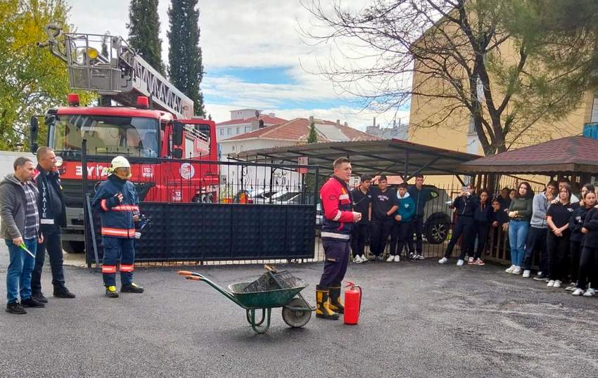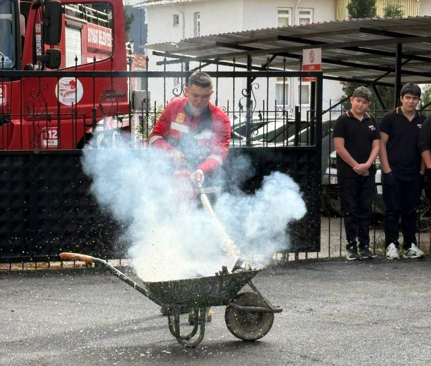 Etkinlik, öğrencilerin katılımıyla yapılan yangın söndürme tatbikatı ile sona erdi.