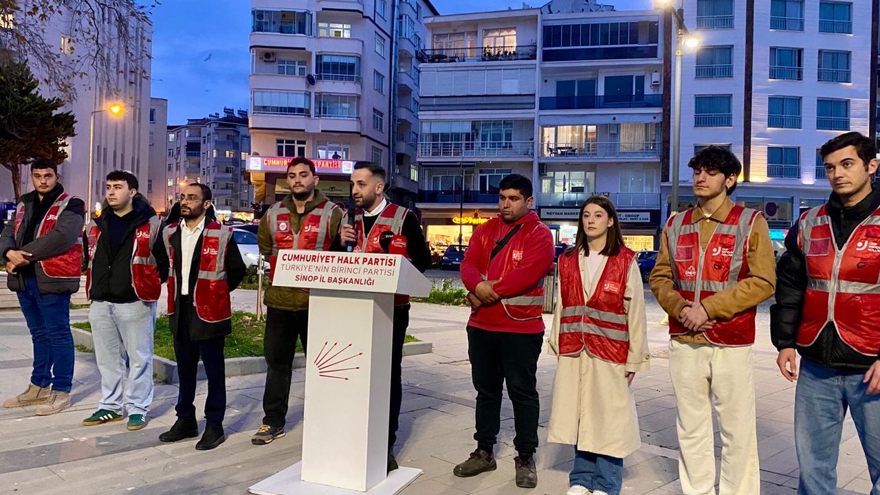 Uğur Mumcu Meydanı’nda düzenlenen basın açıklamasına Sinop Belediye Başkanı Metin Gürbüz, CHP Sinop İl Başkanı Aykut Cem Yalçınkaya, CHP İl Kadın Kolları Başkanı Esin Tümer ile çok sayıda partili eşlik etti.