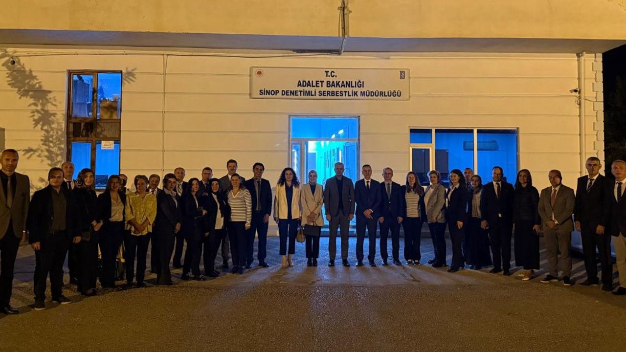 Sinop Adliyesindeki görüşmenin ardından Denetimli Serbestlik Müdürlüğüne giden heyete, denetimli serbestlik uygulamalarıyla ilgili yürütülen projeler hakkında, kurumlar arası iş birliğiyle ve yükümlülerin toplumsal uyumunu destekleyen çalışmalar ile ilgili bilgilendirme yapıldı.