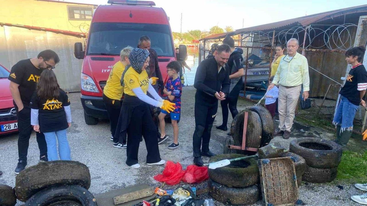 Giresun’un Gemilerçekeği Üçkayalar Balıkçı Barınağı’nda düzenlenen çevre etkinliğinde, deniz tabanında biriken atıklar gönüllüler tarafından temizlendi.