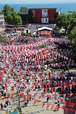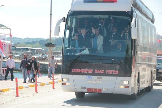CHP Genel Başkanı Kemal Kılıçdaroğlu Milletvekili genel seçimleri öncesi geçen ay başlattığı miting maratonu kapsamında Sinop'taydı. Sinop Havalimanında partililer tarafından karşılanan Kılıçdaroğlu, seçim otobüsüyle Sinopluları selamlayarak kente girdi.
