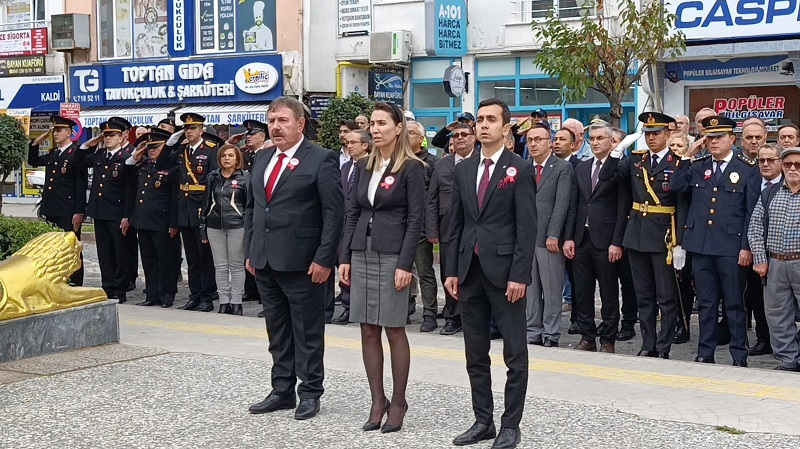 Türkiye Cumhuriyeti’nin kuruluşunun 102. yıl dönümü dolayısıyla Gerze Hükümet Konağı önünde çelenk sunma töreni düzenlendi.