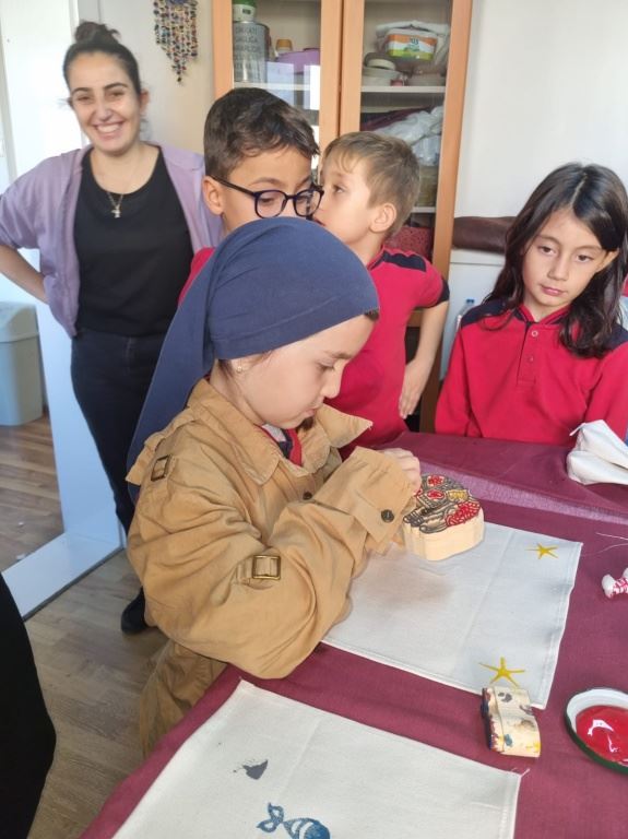 Etkinlik boyunca küçük öğrenciler, hayal güçlerini kumaşlara yansıtarak kendi desenlerini ortaya çıkardı. El becerileri ve motor gelişimlerine katkı sağlayan bu çalışma, aynı zamanda kültürel mirasımızın önemli örneklerinden el sanatlarının tanıtılmasına da vesile oldu.