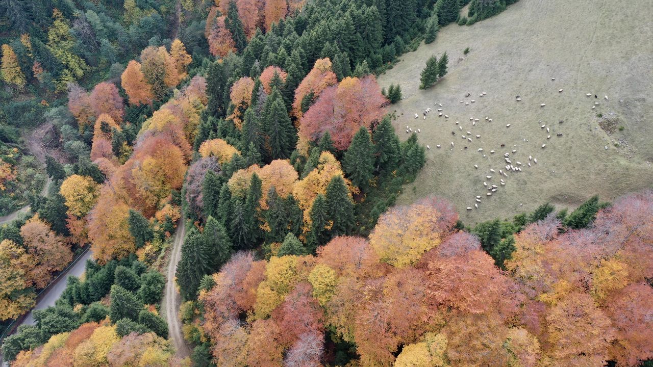 Giresun'un Dereli ilçesinde sonbaharla birlikte ormanlık alanlardaki ağaçlar sarı ve yeşilin tonlarına büründü.