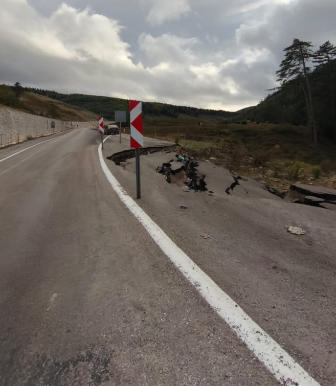 Ancak artan trafik yoğunluğuna rağmen, iki yıldır onarılmayan göçük sürücüler için tehlike oluşturmaya devam ediyor. Karayolları ekiplerinin bölgeye uyarı direkleri diktiği ve şerit çektiği görülse de, kalıcı bir çözüm için herhangi bir çalışma yapılmadı.