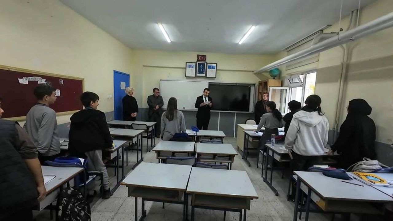 Kaymakam Doğancı, Şehit Bahattin Dolma Ortaokulu'nda eğitim gören 8. sınıf öğrencilerinin Destekleme ve Yetiştirme Kursu (DYK) çalışmalarını inceledi.