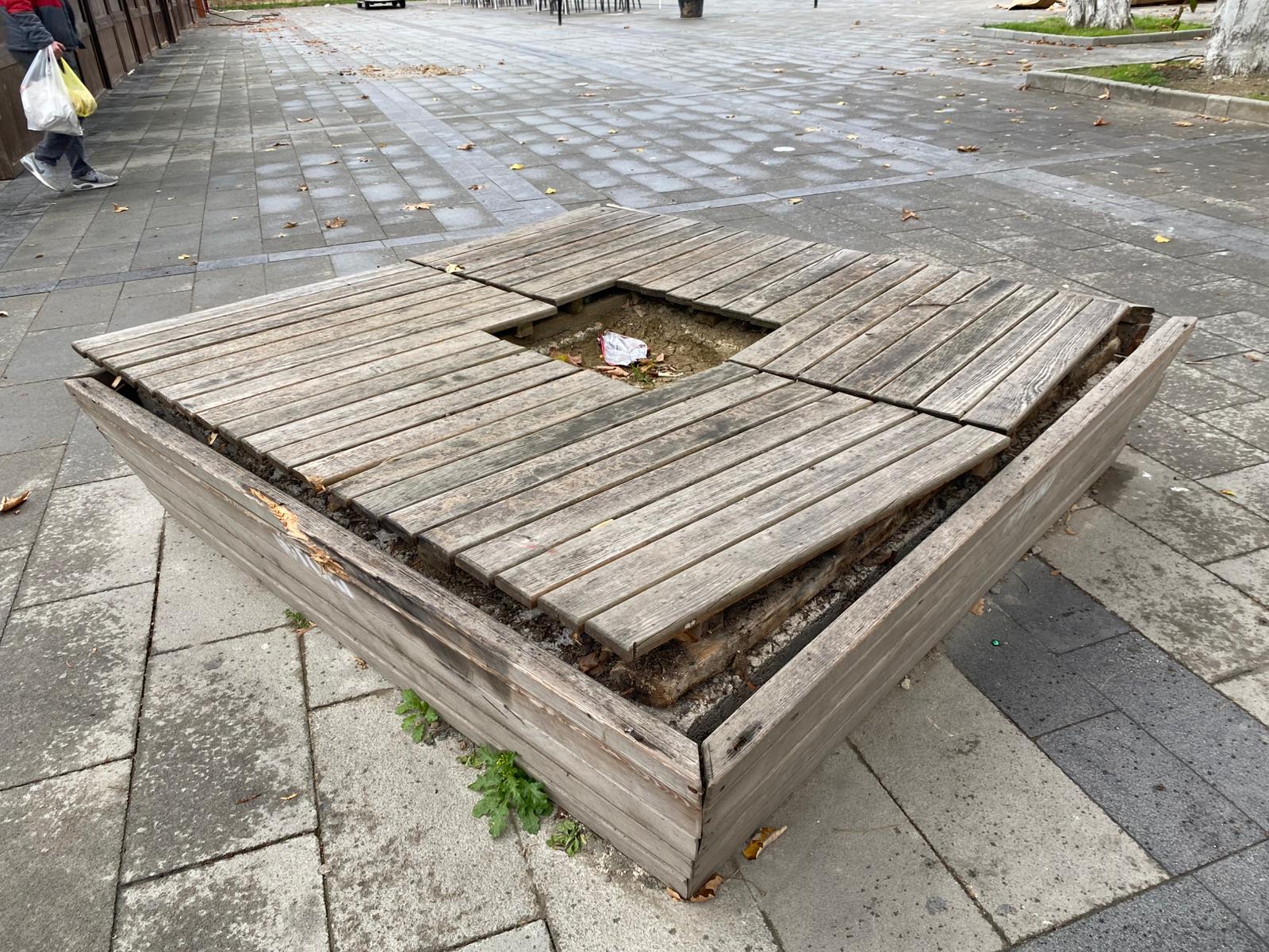 Kentin en işlek noktalarından biri olan Uğur Mumcu Meydanı’nda oturma bölümlerindeki ahşap kaplamaların bazı yerlerinde çökme, kırılma ve çürümelerin oluştuğu görülüyor. Özellikle zeminden ayrılan ve sivri uçları ortaya çıkan tahtalar, çevredeki vatandaşlar için yaralanma riski taşıyor.