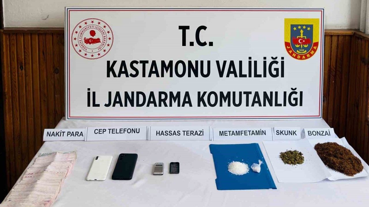 Edinilen bilgiye göre, Kastamonu İl Jandarma Komutanlığı ekipleri tarafından uyuşturucu ile mücadele kapsamında tespiti yapılan F.Ş. isimli şüpheliye yönelik operasyon düzenlendi. Gerçekleştirilen operasyonda 29 gram metamfetamin, 93 gram bonzai, 11 gram skunk, 1 adet hassas terazi, 2 adet cep telefonu ve SIM kartı ile 37 bin 580 TL nakit para ele geçirildi.
