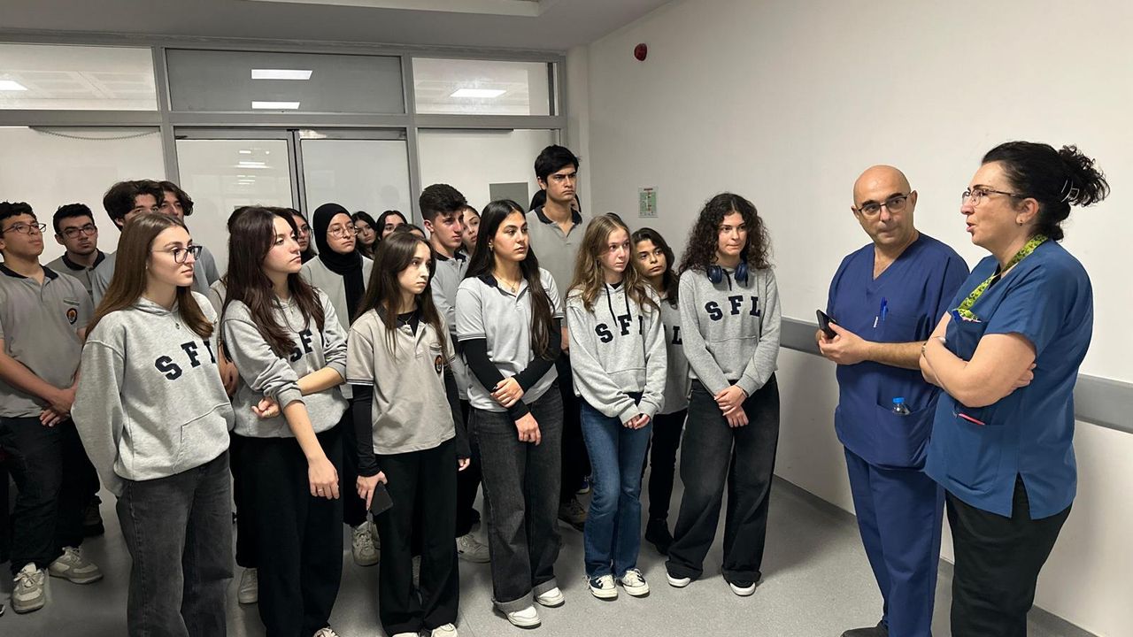 Okul Müdürü Atacan Darıcı eşliğinde gerçekleştirilen gezide öğrenciler, hastanedeki farklı birimleri yakından görme ve sağlık çalışanlarının görevlerini yerinde gözlemleme fırsatı buldu.