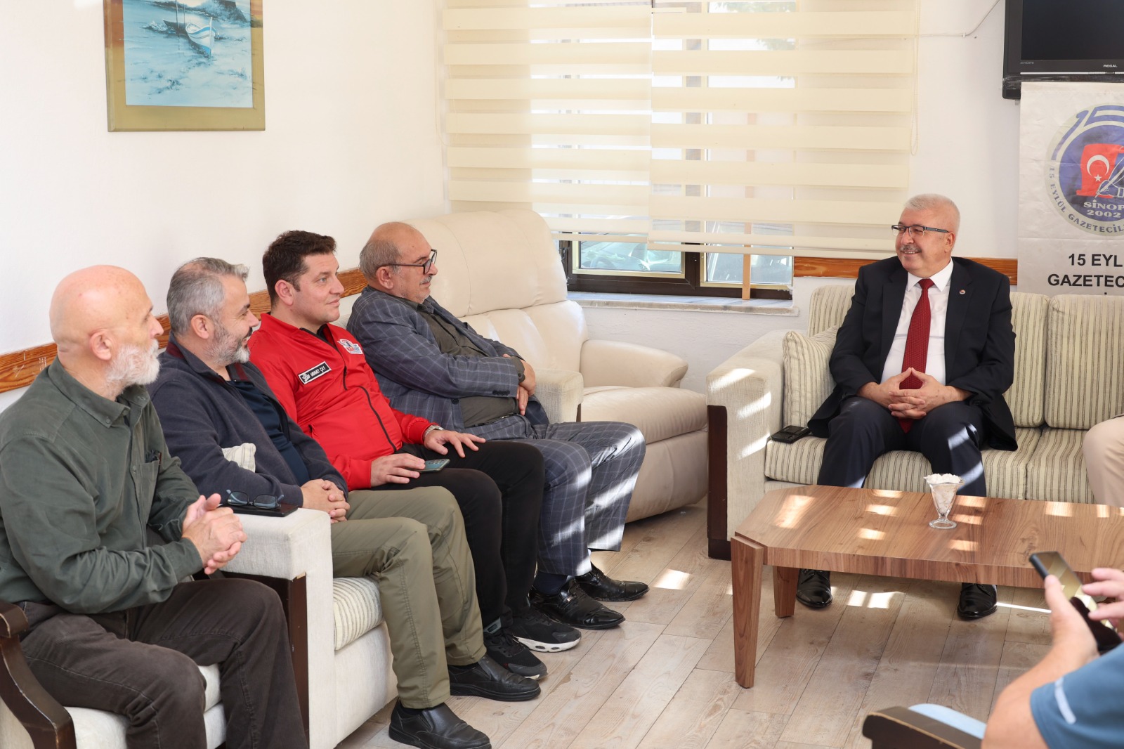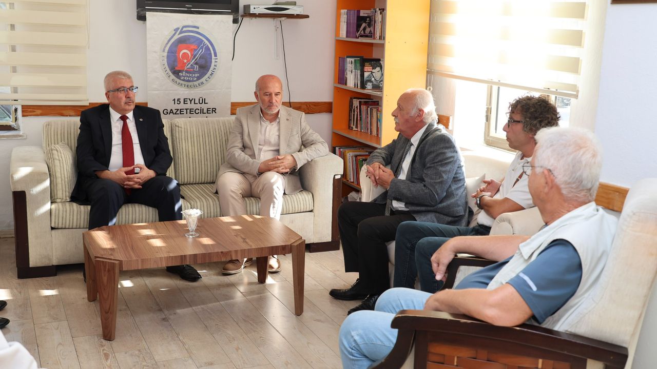 Sinop Üniversitesi Rektörü Prof. Dr. Şakir Taşdemir, Karadeniz Gazeteciler Federasyonu Genel Başkan Yardımcılığına seçilen 15 Eylül Gazeteciler Cemiyeti Başkanı Cengiz Demirel’e hayırlı olsun ziyaretinde bulundu.