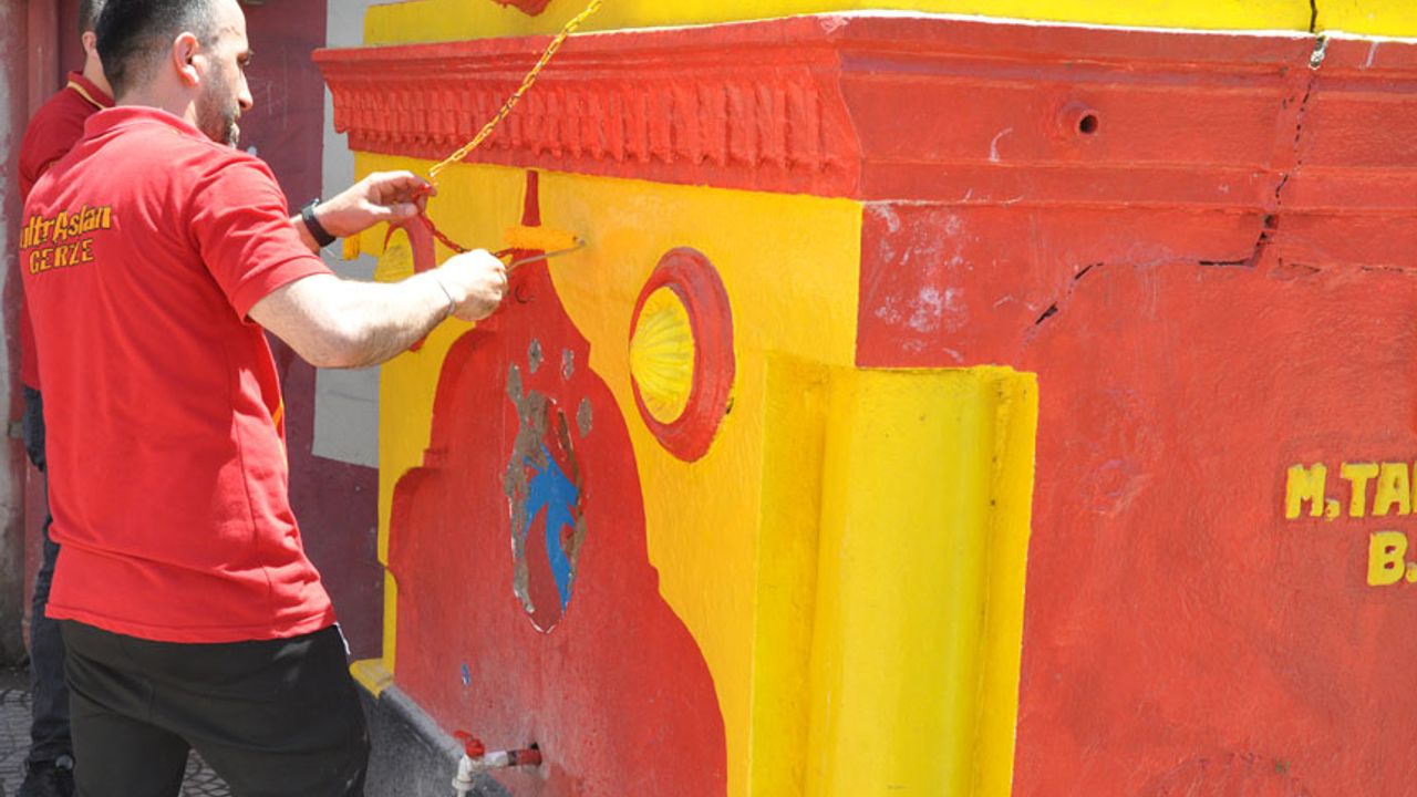 Taraftar Çeşmesinin her yıl şampiyon olan futbol takımının renklerine boyanması geleneği 41 yıldır devam ediyor.