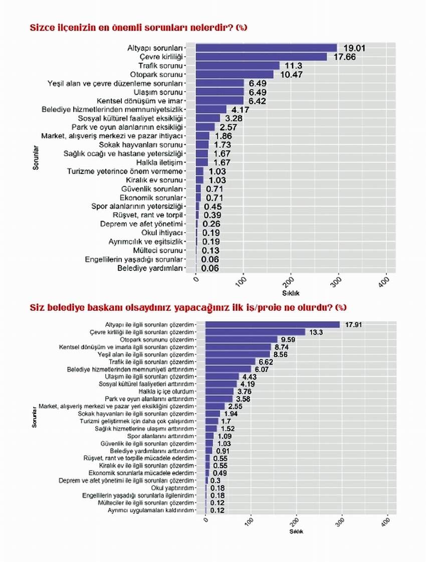 Ankete katılan 808 kişinin yüzde 37,3’ü kadın, yüzde 62,7’sinin erkeklerden oluştuğu bilgisini veren Baltacı ankete farklı yaş grupları, eğitim düzeyi ve gelir durumu vatandaşların katılımı ile Sinop’un sorunlarına yönelik bir anket çalışması yaptıklarını belirtti. Anket çalışmaları Sinop’un her mahallesi ayrı olarak değerlendirilirken vatandaşların çözüm bekleyen sorunları ise şöyle sıralandı; Altyapı sorunları, çevre kirliliği, trafik sorunu, otopark sorunu, yeşil alan ve çevre düzenleme sorunları, ulaşım sorunu, kentsel dönüşüm ve imar, belediye hizmetlerinden memnuniyetsizlik, kültürel ve sosyal faaliyet eksikliği, park ve oyun alanlarının eksikliği, market alışveriş merkezi ve Pazar ihtiyacı, sokak hayvanları sorunu.
