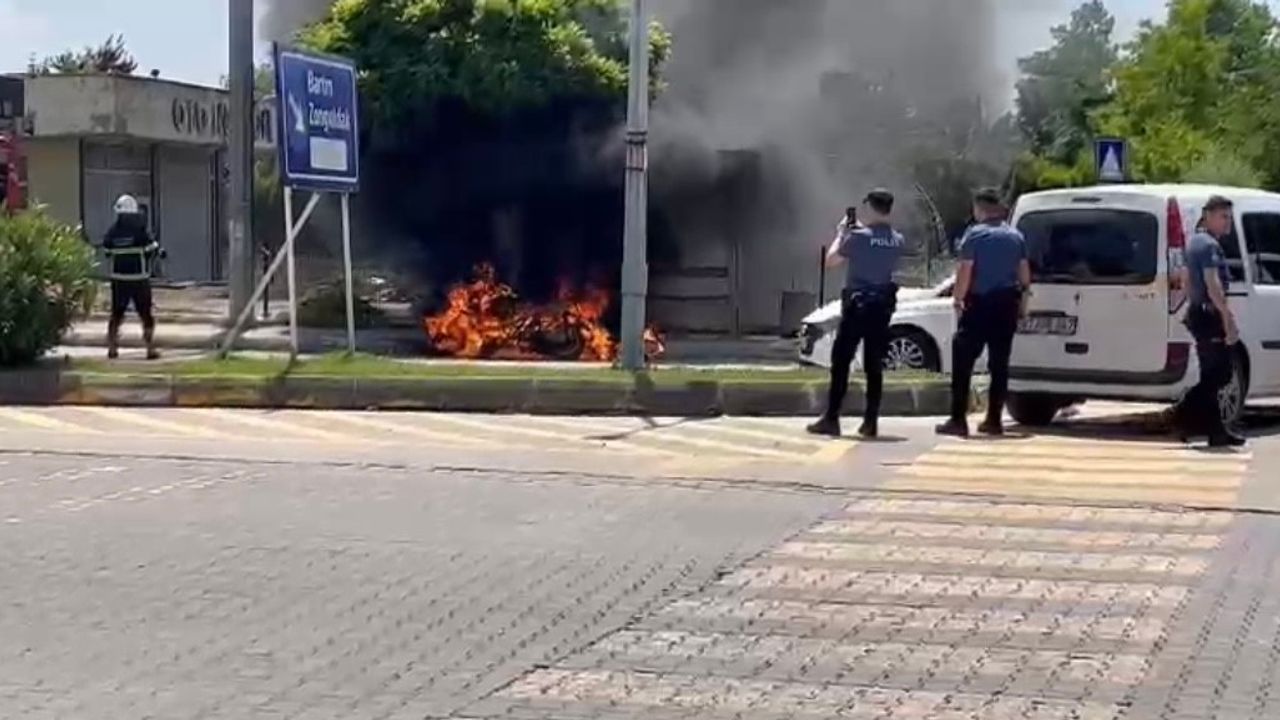 Yangın, ilçenin 6 Nisan Köprülü Kavşağı’nda meydana geldi. Edinilen bilgiye göre, seyir halindeki 34 DG 1664 plakalı motosiklet bir anda alev alırken, sürücü hemen yavaşlayarak kendisini yere attı. Kısa süre içinde motosiklet alev topuna dönerken, ihbar üzerine bölgeye itfaiye ve polis ekipleri yönlendirildi.
