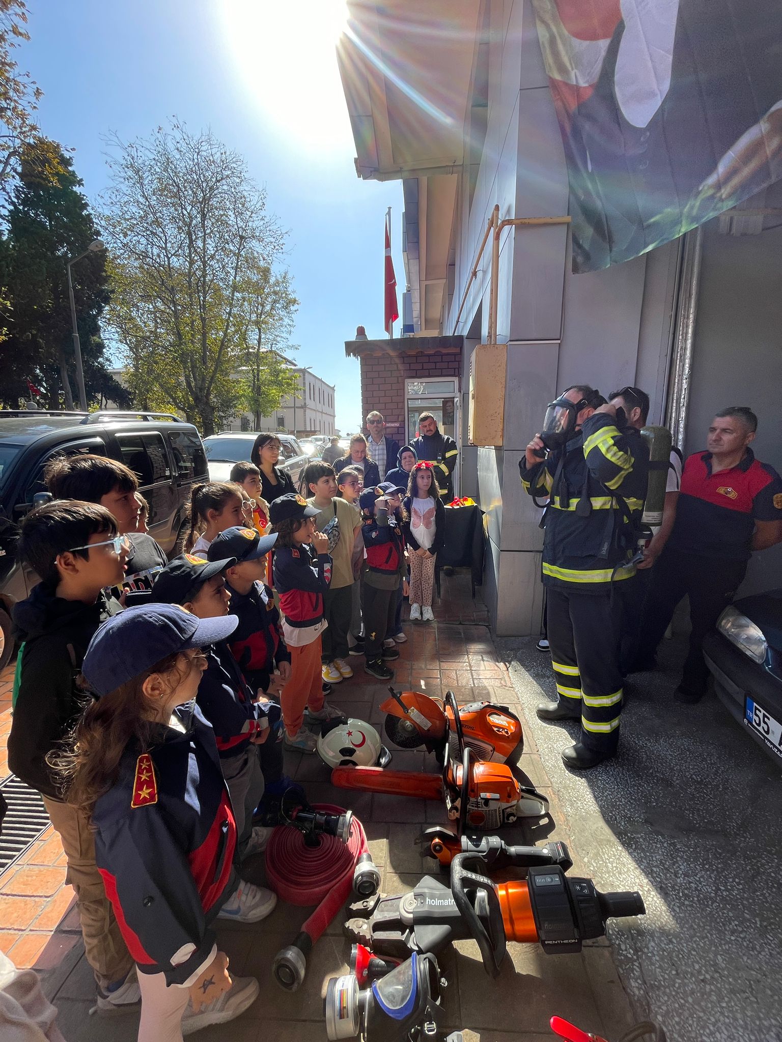 Etkinlik kapsamında çocuklara, yangınlarla mücadelede itfaiyenin rolü, kullanılan araç-gereçler ve yangın anında yapılması gerekenler hakkında bilgi verildi. İtfaiye personeli, minik misafirlere araçların çalışma prensiplerini anlatarak yangın söndürme tüpü kullanımı gibi temel güvenlik bilgilerini de uygulamalı şekilde gösterdi.