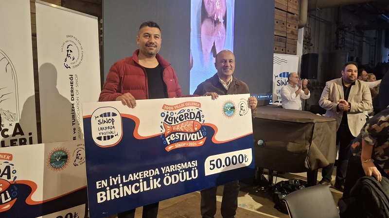 Sinop Belediyesi ile Sinop Kültür ve Turizm Derneği iş birliğinde düzenlenen Lakerda Festivali kapsamında Sabahattin Ali Kültür Merkezi’nde gerçekleştirilen final etkinliğinde birçok yarışmacının hazırladığı lakerdalar jürinin beğenisine sunuldu. Jürinin yaptığı değerlendirmeler sonrasında, en lezzetli 3 lakerdanın sahibi 20, 30 ve 50 bin liralık ödüllerin sahibi oldu.