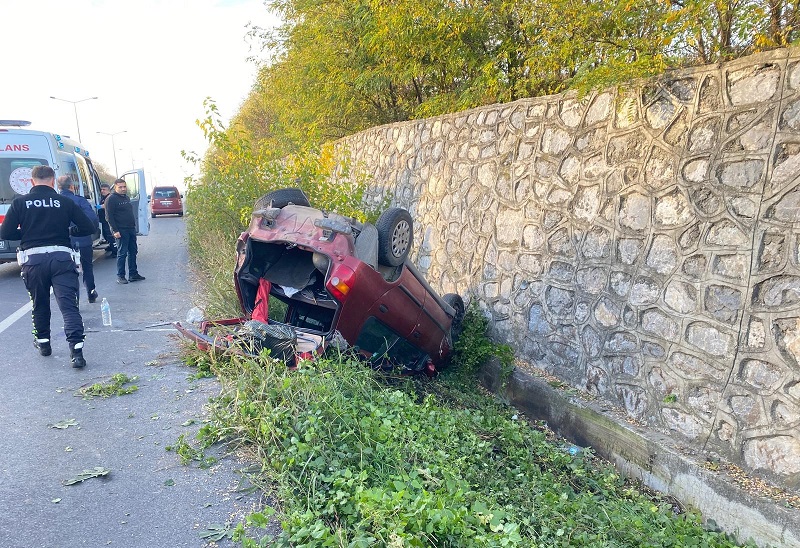 Kaza, Samsun-Sinop karayolu Sarıgazel Tabiat Parkı mevkisinde meydana geldi. Edinilen bilgiye göre, Sinop istikametine seyir eden Y.K. yönetimindeki otomobil, sürücünün direksiyon hakimiyetini kaybetmesi sonucu takla atarak istinat duvarına çarptı. Ters dönen otomobilde Z.K. ile eşi Z.K. yaralandı.