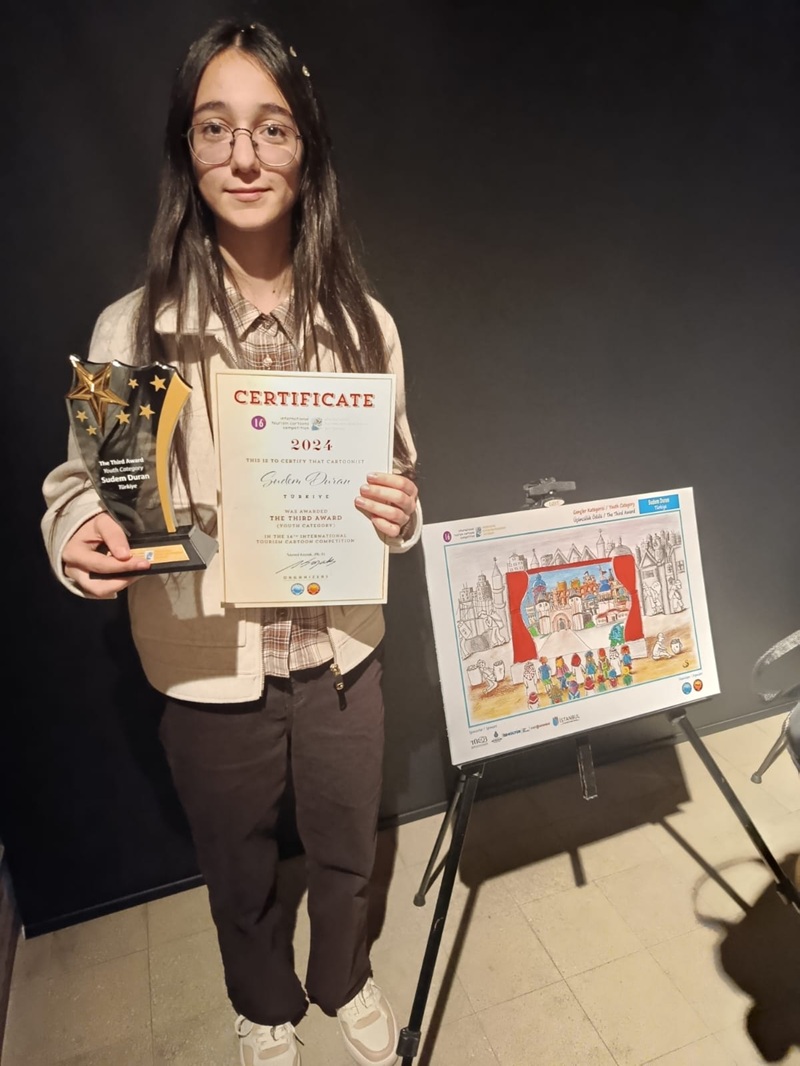 Sinop Fen Lisesi 9. sınıf öğrencisi Sudem Duran, Anatolia Turism Akademisi tarafından düzenlenen “İstanbul’da Turist Olmak” konulu 16. Uluslararası Karikatür Yarışması’nda dünya üçüncüsü olarak büyük bir başarıya imza attı.