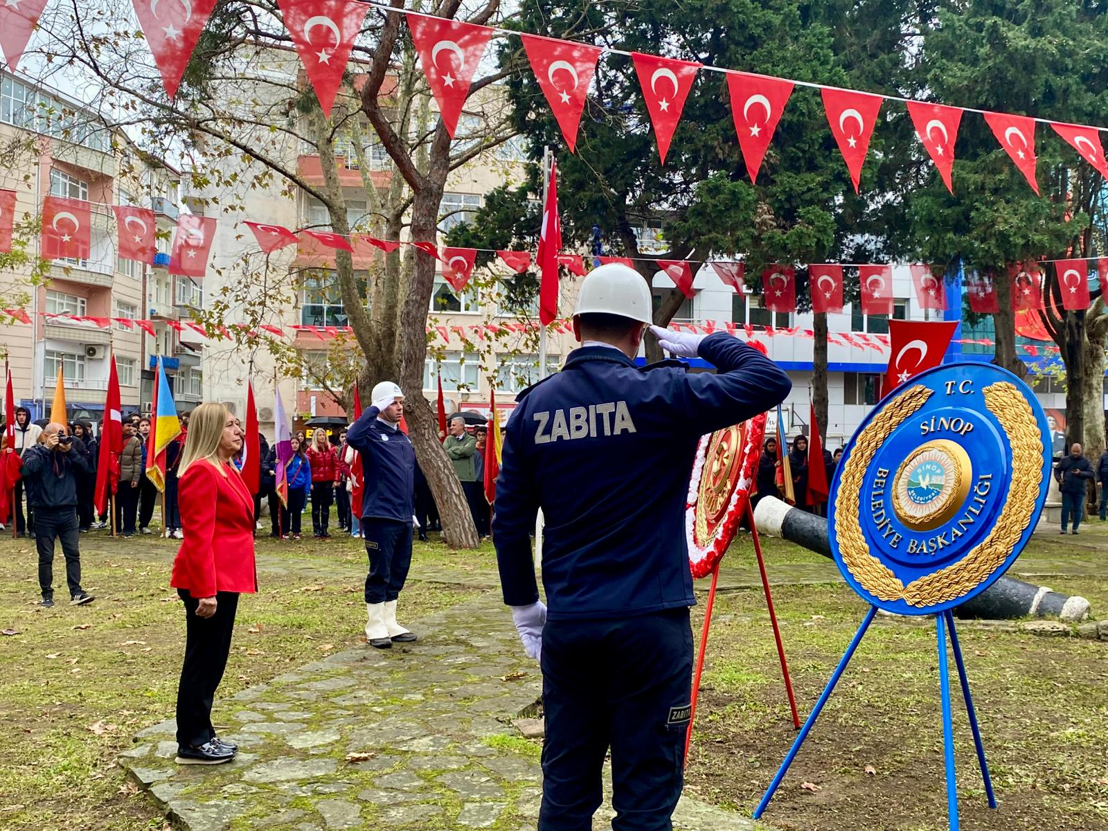 Sinop Deniz Şehitliği’nde düzenlenen törende Sinop Valiliği, Sinop Belediye Başkanlığı, Şehit ve Gazi Aileleri Yardımlaşma ve Dayanışma Derneği çelenklerinin sunulması ardından askeri tören mangası tarafından saygı atışı gerçekleştirildi.
