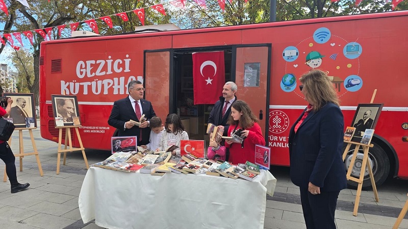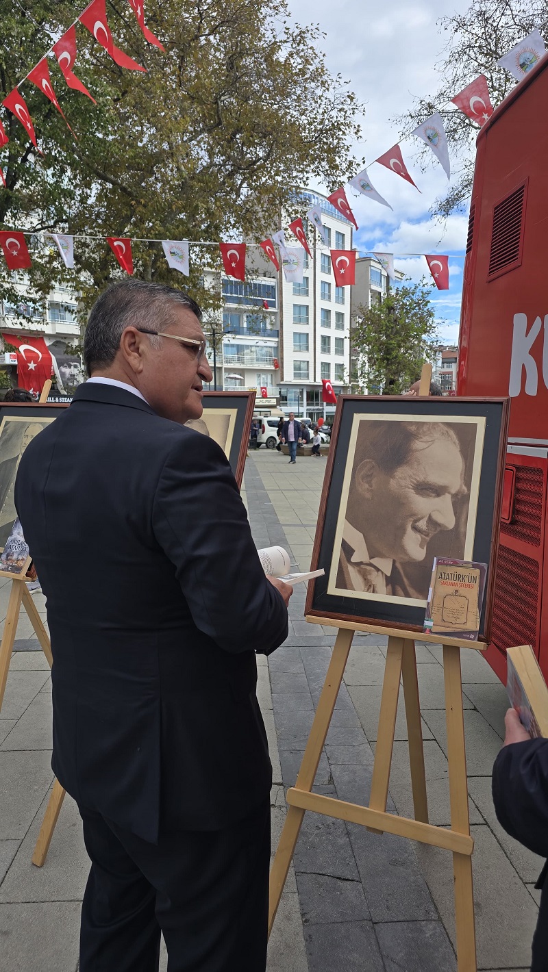 İskele Meydanı’nda vatandaşlarla buluşturulan sergide, Gazi Mustafa Kemal Atatürk’ün hayatını, fikirlerini ve Cumhuriyet’in kuruluş sürecini anlatan kitapların yanı sıra, Atatürk temalı resimler de yer aldı.
