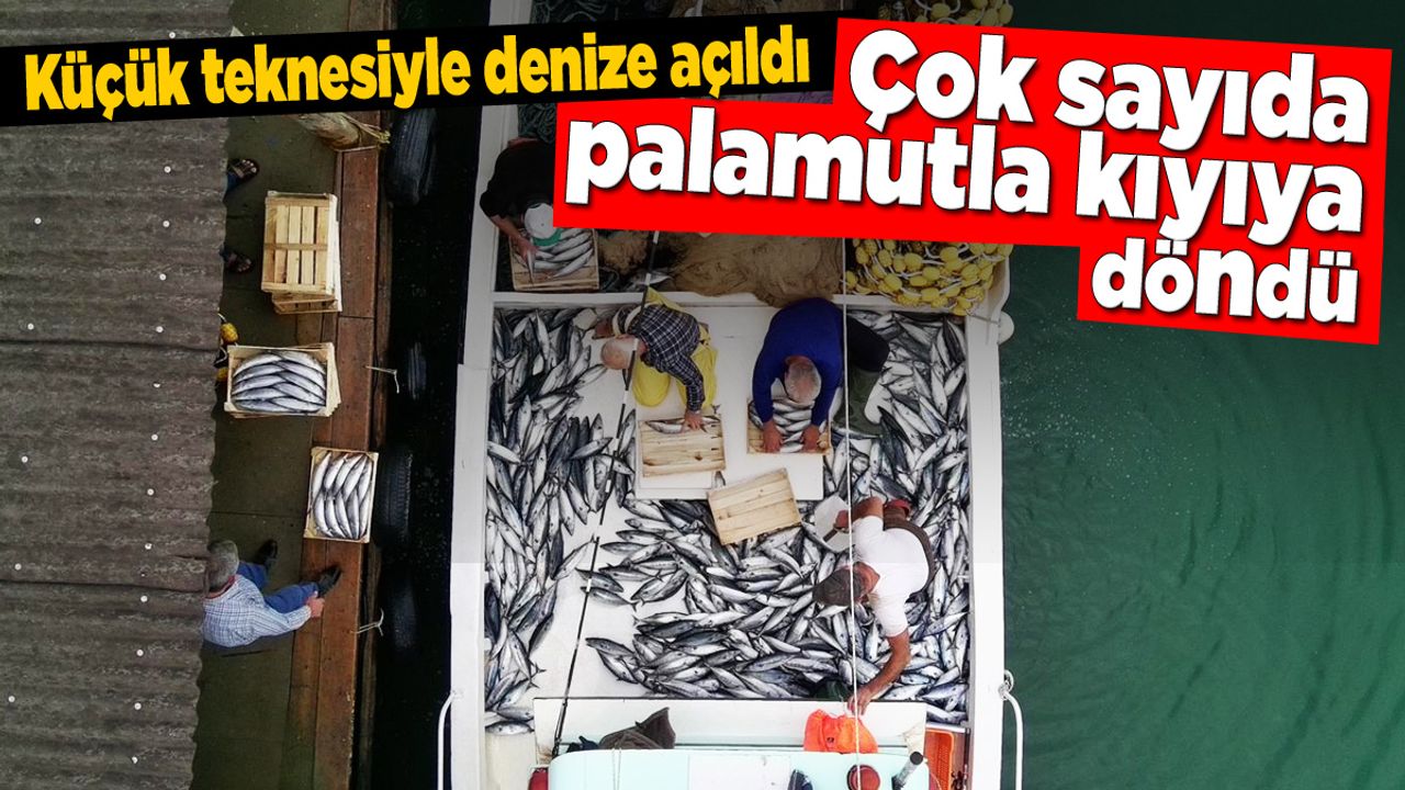 Güzelkent Limanı'ndan sabah saatlerinde teknesiyle denize açılan Sinan Ersoy'un ilçenin açıklarında bıraktığı ağlarına yaklaşık 1000 palamut takıldı.