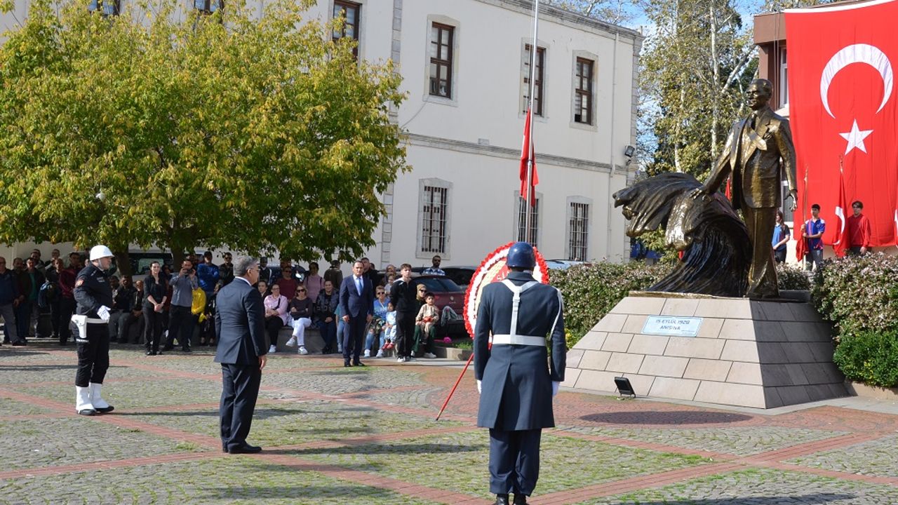 Sinop Hükümet Meydanı’nda bulanan Atatürk Anıtı önünde gerçekleştirilen çelenk sunma törenine Sinop Valisi Mustafa Özarslan, Sinop Belediye Başkanı Metin Gürbüz, Cumhuriyet Başsavcısı Mesut Pektaş, siyasi parti temsilcileri ve protokol üyeleri katıldı.