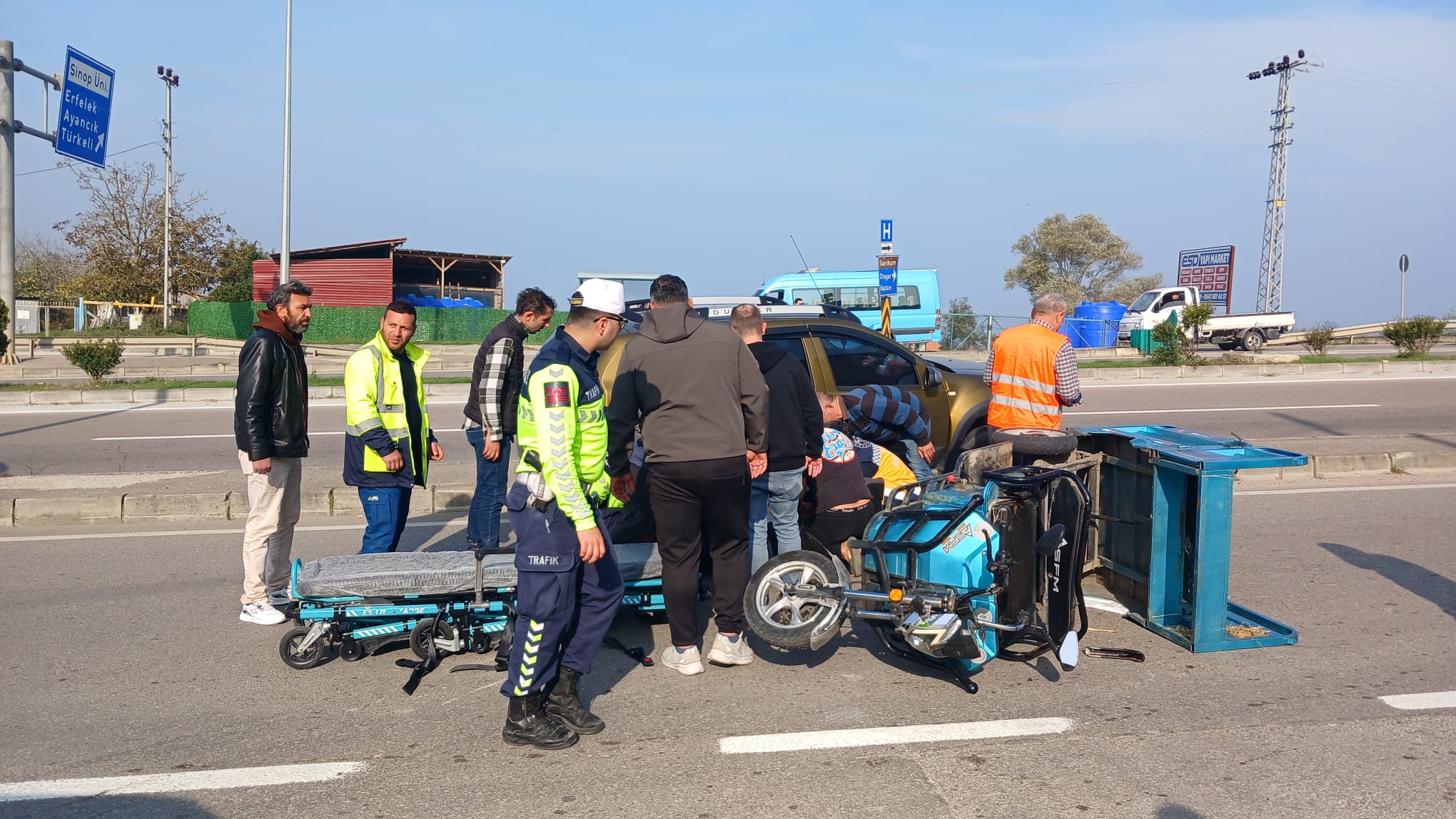 Edinilen bilgiye göre, K.O. (63) idaresindeki 57 ACE… plakalı elektrikli motosiklet, Korucuk Köyü istikametinden Sinop yolu yan bağlantı yoluna dönüş yaptığı sırada sürücüsünün direksiyon hakimiyetini kaybetmesi sonucu devrildi. Savrulan motosiklet, Ayancık kavşağı yönünden gelen İ.Ö. (62) yönetimindeki 57 ABF… plakalı otomobile sağ yan kısmından çarptı.