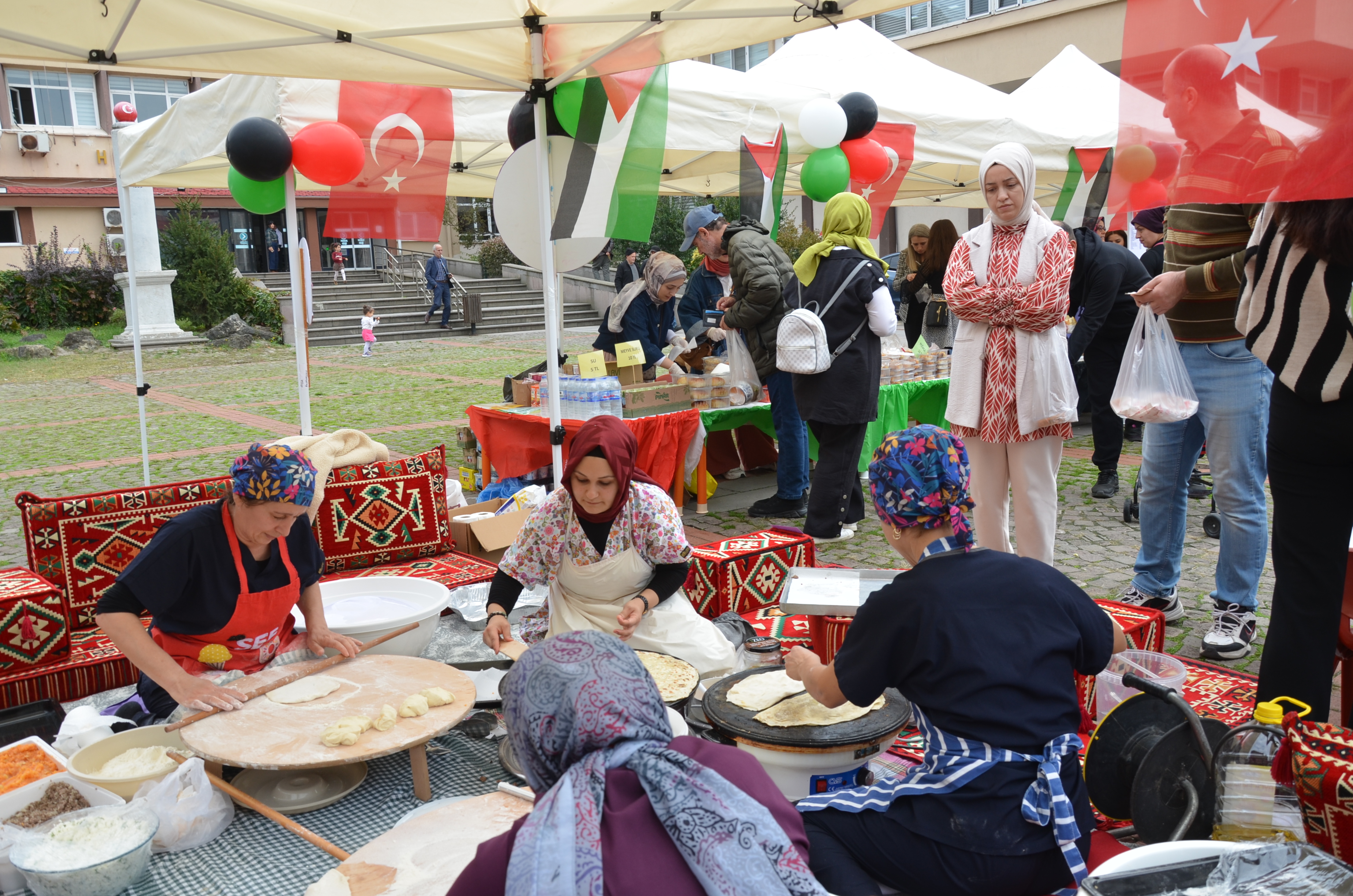 Milli Eğitim Bakanlığı’nın başlattığı proje kapsamında düzenlenen kermes, Hükümet Konağı önünde gerçekleştirildi. Saat 11.00 ile 13.00 arasında gerçekleştirilen etkinlikte öğretmenler, veliler ve öğrenciler el emeği ürünlerini sergileyerek satışa sundu. Kermesten elde edilen gelir, Gazze’deki ihtiyaç sahiplerine ulaştırılacak. Etkinlik boyunca vatandaşlar stantlara yoğun ilgi gösterirken, minik öğrencilerin duyarlılığı takdir topladı. Konuyla ilgili açıklama yapan İl Milli Eğitim Müdürü Osman Cebeci, bakanlığın 20-26 Ekim arası Gazze'ye destek kermeslerinin tüm Türkiye genelindeki okullarda yapılmasının planlandığını söyledi. Bu kapsamda Sinop’taki tüm okullarda bir hafta boyunca destek kermesleri yaptıklarını belirten Cebeci, “Bu aslında bir kermes değil. Tamamen bir umudun habercisi. Yaşanan olaylarla ilgili şu anda mağdur ve mazlum insanların yanında olmak anlamında bir nebze olsun onların yaralarına merhem olmak anlamında bu tür etkinlikleri yapıyoruz ve müthiş de bir katılım var. Velilerimizden, öğrencilerimizden ciddi anlamda da destek var. Bizim de çorbada bir tuzumuz olsun dedik. Bununla alakalı oradaki Filistinli kardeşlerimize yalnız olmadıklarını hissettirmek istedi. Biz istiyoruz ki artık dünyada barış olsun. Çocuklarımız ölmesin istiyoruz. Onun için bu noktada da bu kermeslere destek veren öğretmenlerimize, yöneticilerimize, okullarımıza, velilerimize çok teşekkür ediyorum.” dedi. Gazze için dayanışma ruhuyla düzenlenen kermes, Sinop’ta birlik ve yardımseverliğin güzel bir örneği oldu.