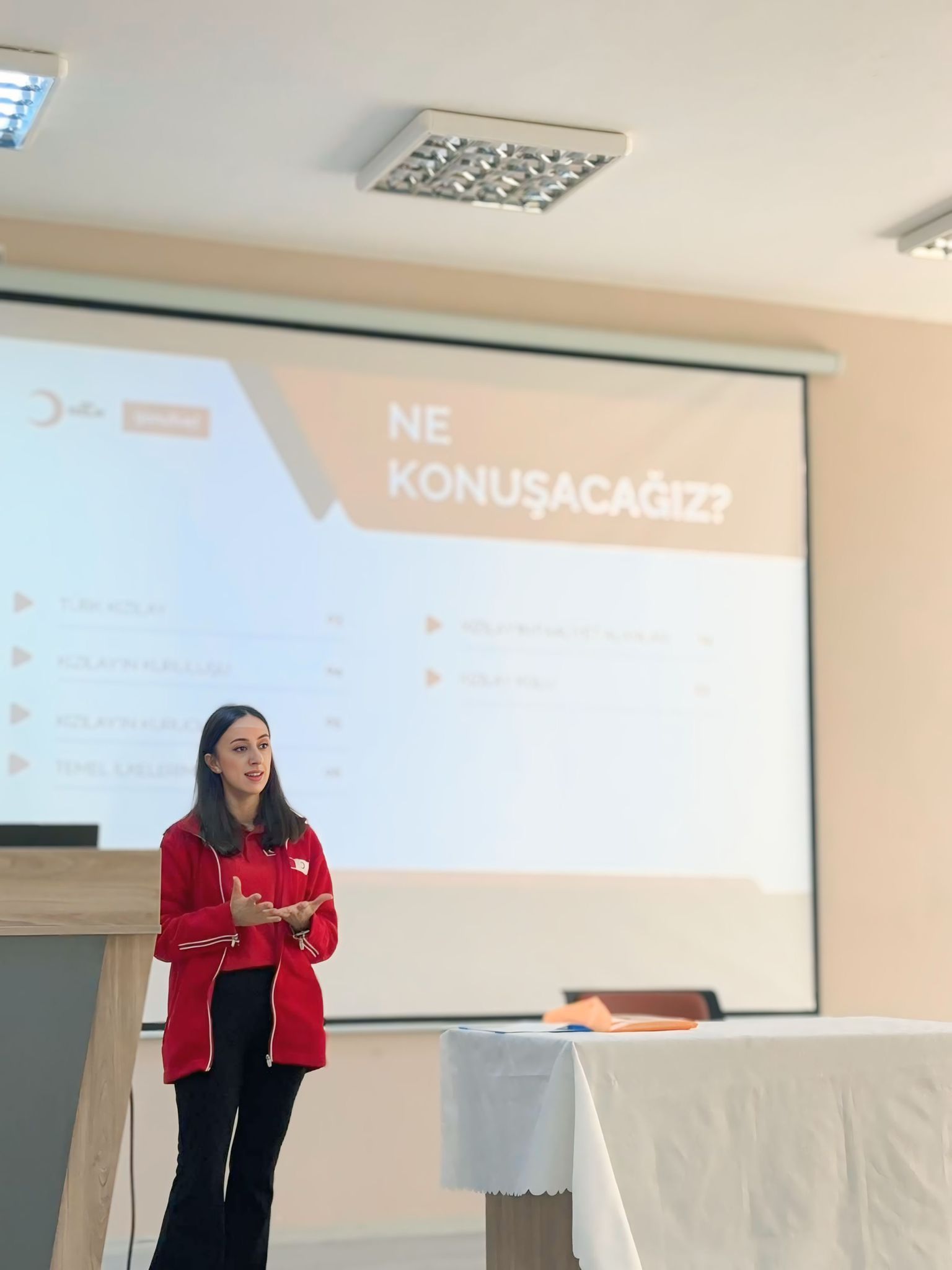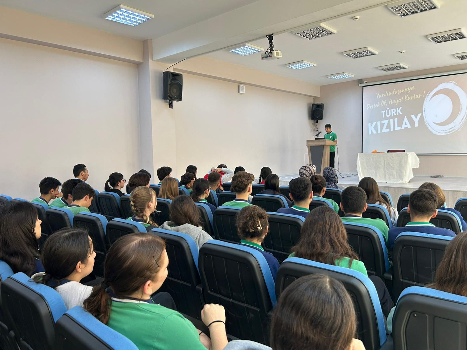 Programda, Kızılay’ın yurt içinde ve yurt dışında yürüttüğü insani yardım çalışmaları, afet yönetimi süreçleri, kan bağışı hizmetleri ve sosyal destek projeleri detaylı şekilde öğrencilere aktarıldı.