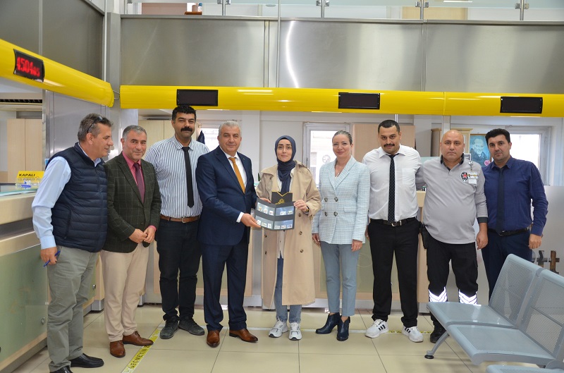 Günün talihlisi Hülya Çalışkan, güzel hediye için PTT Başmüdürü İbrahim Köklü’ye teşekkür etti.