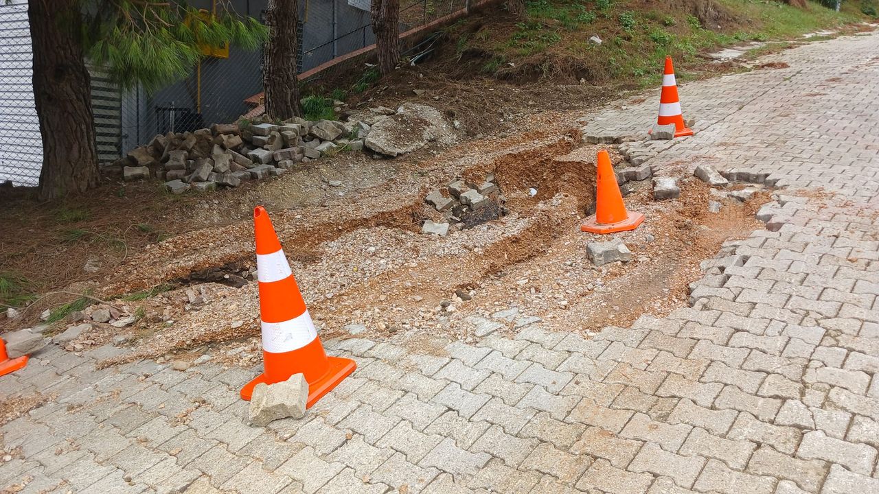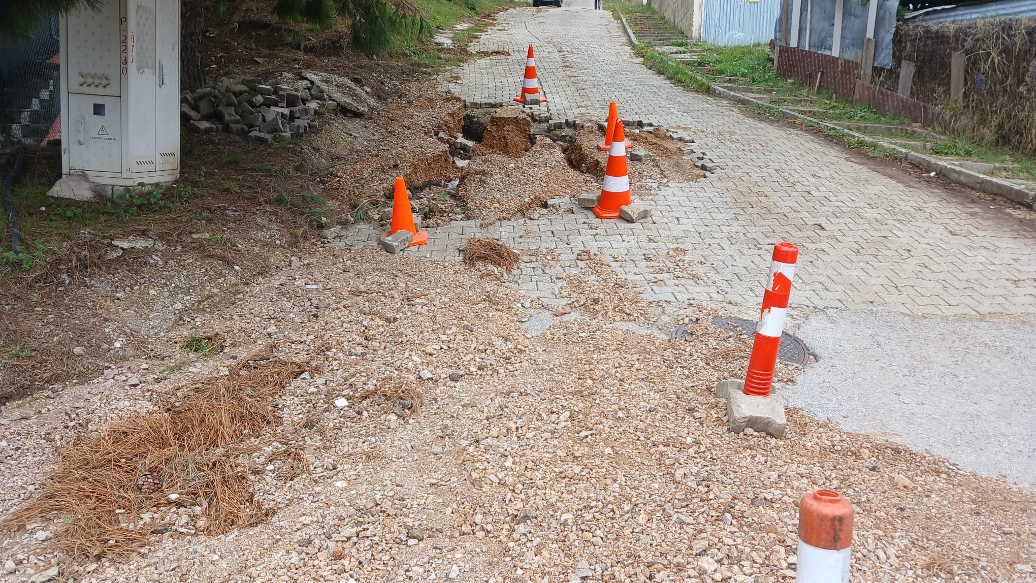 Belediye ekipleri, güvenlik önlemi almak amacıyla yolun zarar gören bölümüne duba yerleştirdi.