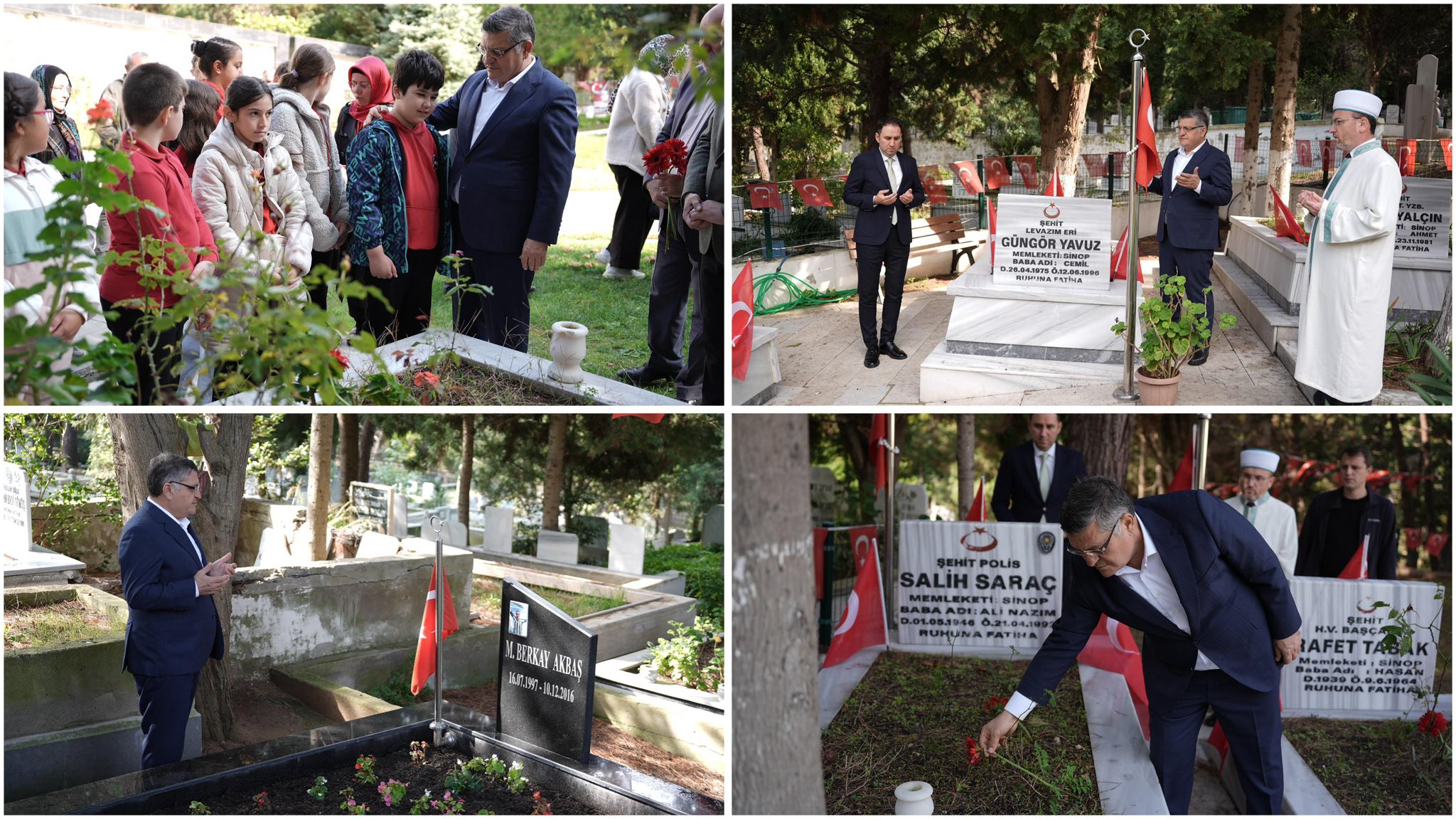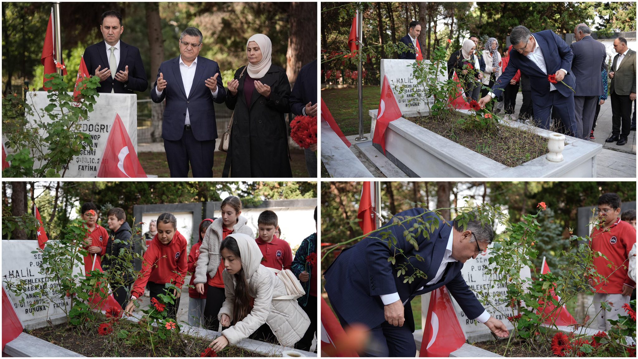 Program, şehit kabirlerinin ziyaret edilmesi ve karanfil bırakılmasıyla sona erdi.