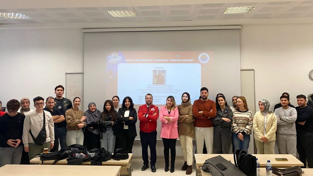 TEKNOFEST Öğrenci Kulübü, Öğrenci Dekanlığı ve Dijital Dönüşüm Ofisi iş birliğiyle düzenlenen etkinliklerde; öğrencileri ulusal ve uluslararası yarışmalara hazırlamak amacıyla motivasyon ve bilgilendirme toplantıları yapıldı. Program kapsamında birimleri tek tek gezen Öğr. Gör. Süleyman Şüyun, TEKNOFEST süreçleri, başvuru aşamaları, proje hazırlama teknikleri ve yarışma kategorileri hakkında öğrencilere detaylı bilgiler aktardı.