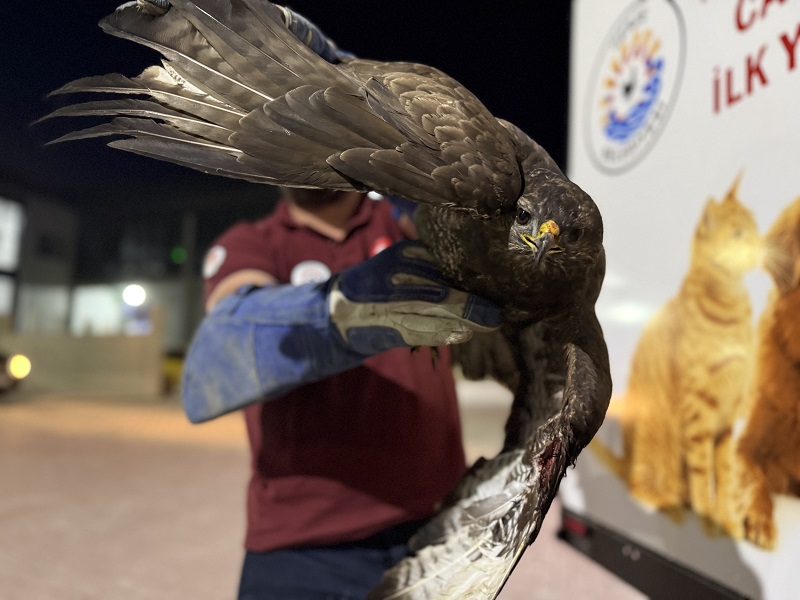 Burada yapılan kontrolde kanat bölgesinden yaralandığı anlaşılan kızıl şahin, daha sonra Doğa Koruma ve Milli Parklar Şubesi ekiplerine teslim edildi.