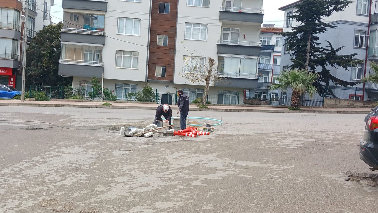 Sinop Belediyesi ekipleri tarafından yürütülen çalışma kapsamında, sokak üzerine hız kesici kasis ve kavşak düzenlemesi yapıldı.