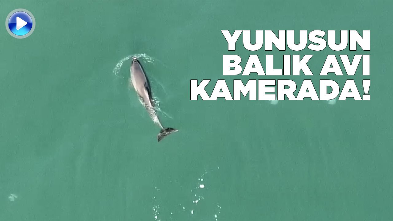 Daha sonra balık avlamaya başlayan yunus, bu sırada dronla görüntülendi.