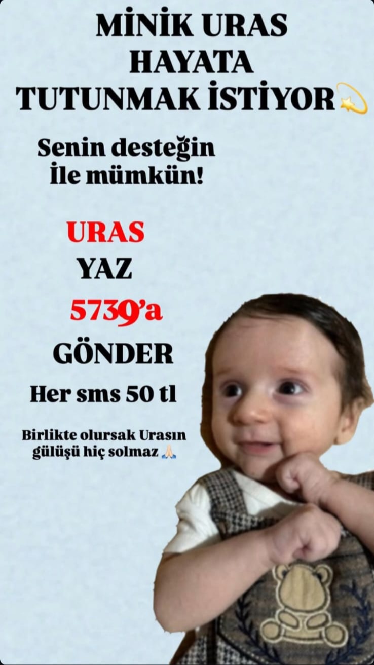 Tüm GSM operatörlerinden URAS yazılarak 5739 numarasına atılacak 50 TL'lik mesajın, Uras'ı yaşama bağlayacağı vurgulandı.