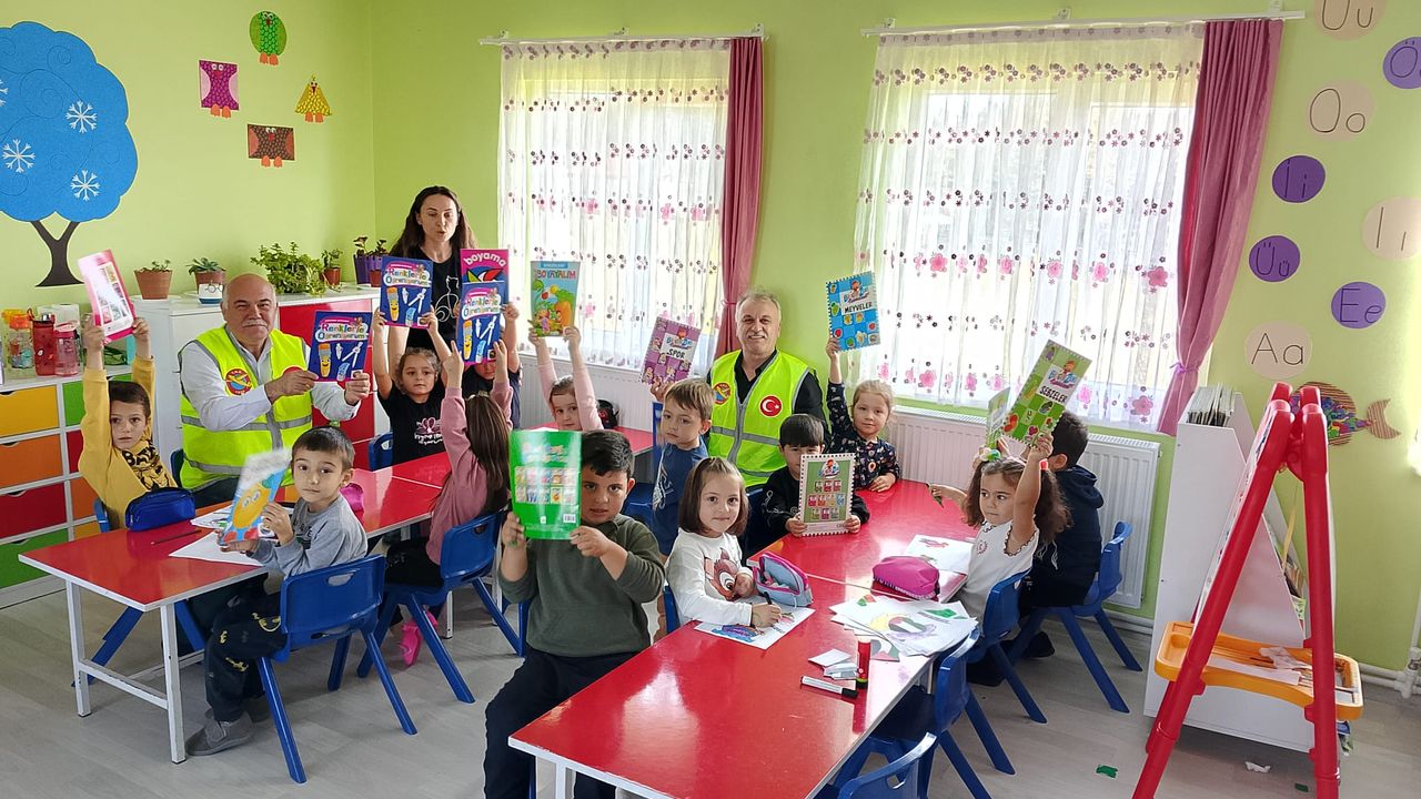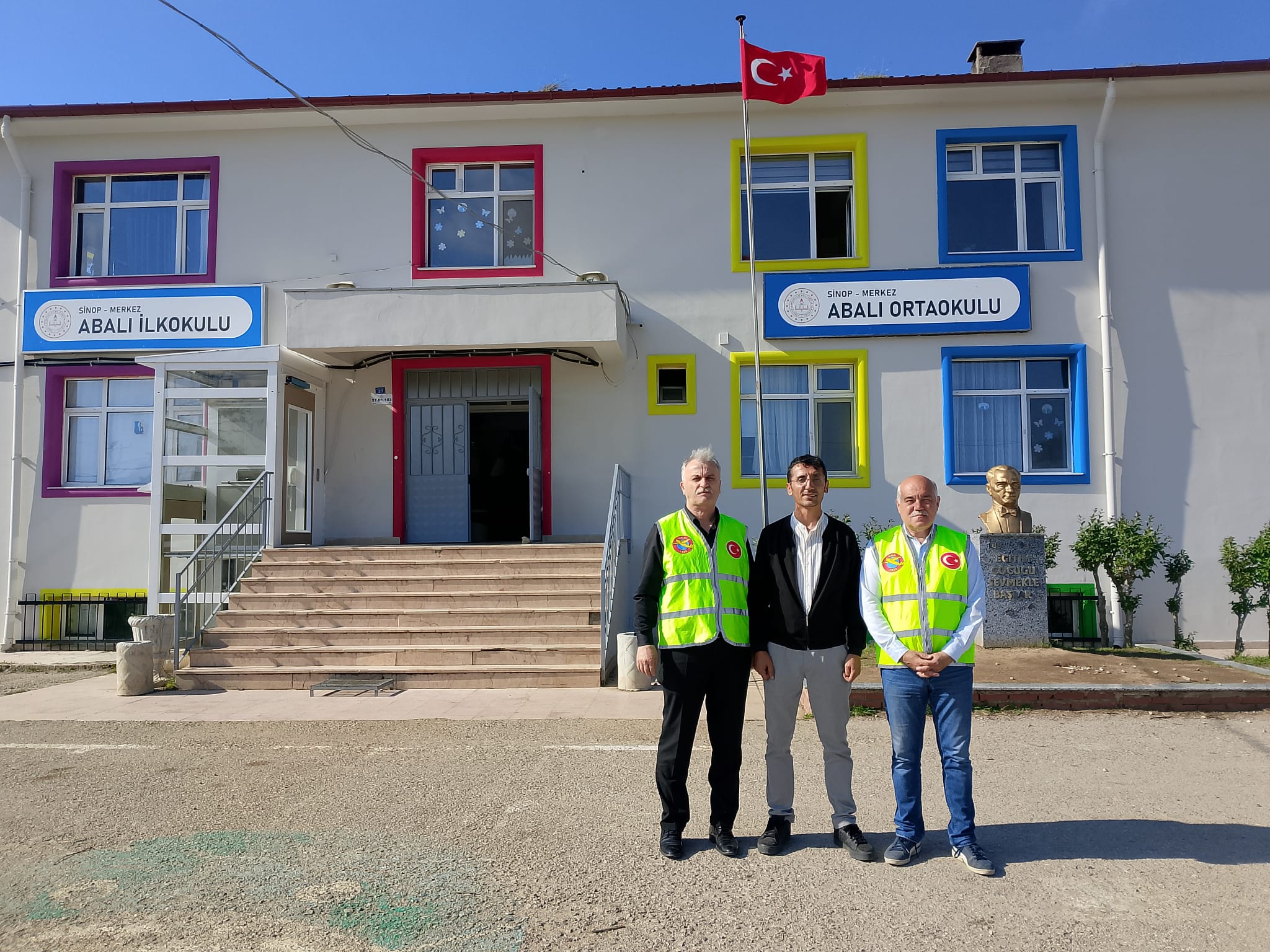 Abalı Köyü İlkokulunda 1, 2 ve 3. sınıfları ziyaret eden THK Sinop Şubesi yöneticileri, öğrencilere Türk Hava Kurumu hakkında bilgiler verdikten sonra THK logolu defterler ve anasınıfı öğrencilerine boyama kitapları hediye ettiler.