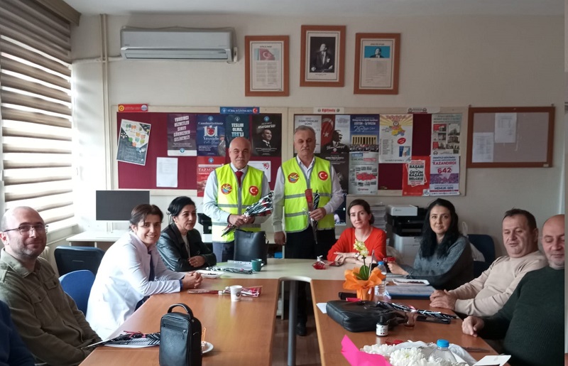 Okulda görev yapan idareci ve öğretmenlerin Öğretmenler Günü’nü kutlayan yönetim üyeleri, öğretmenlere birer karanfil takdim etti.