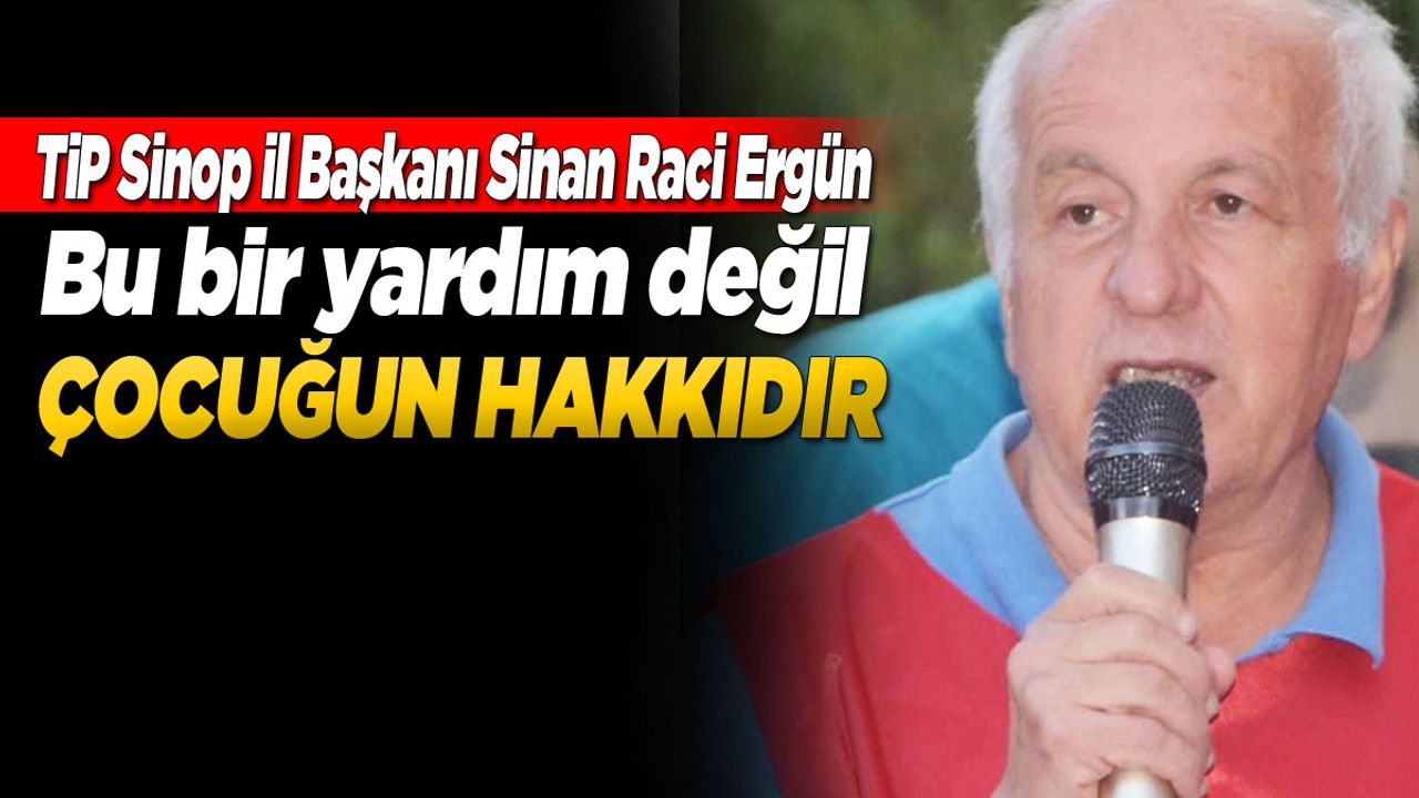 Türkiye İşçi Partisi (TİP), 20 Kasım Dünya Çocuk Hakları Günü’nde tüm Türkiye’de eş zamanlı olarak “Okullarda 1 Öğün Yemek Çocuğun Hakkı, Devletin Görevi” kampanyasını başlatıyor. Kampanyaya ilişkin açıklamalarda bulunan TİP Sinop İl Başkanı Sinan Raci Ergün, çocukların temel haklarına erişimde yaşanan sorunların her geçen gün derinleştiğini söyledi.