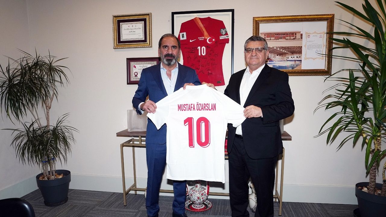 Ziyaret kapsamında Mecnun Otyakmaz, Vali Özarslan’a üzerinde ismi yazılı 10 numaralı A Milli Takım forması hediye etti. Vali Özarslan, gösterdiği nezaket ve misafirperverlik için Otyakmaz’a teşekkür etti.
