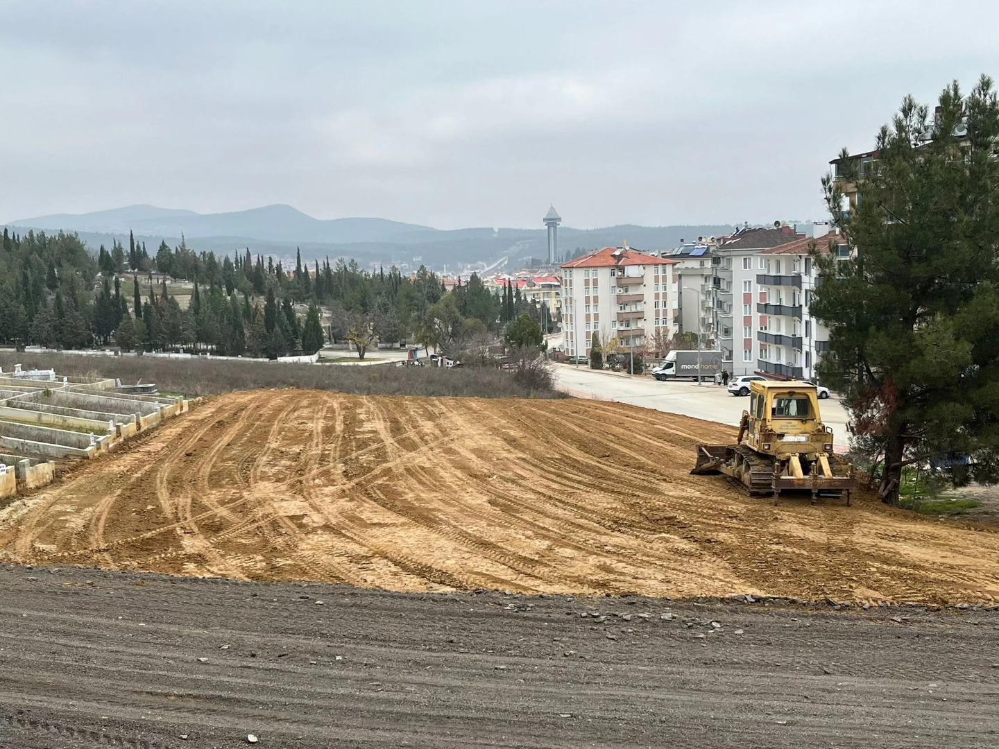 Toplamda 2500 mezar kapasiteli alanın ilk etap çalışmaları kapsamında yapılacak yeni mezar yeri çalışmalarında yarıya gelindi.